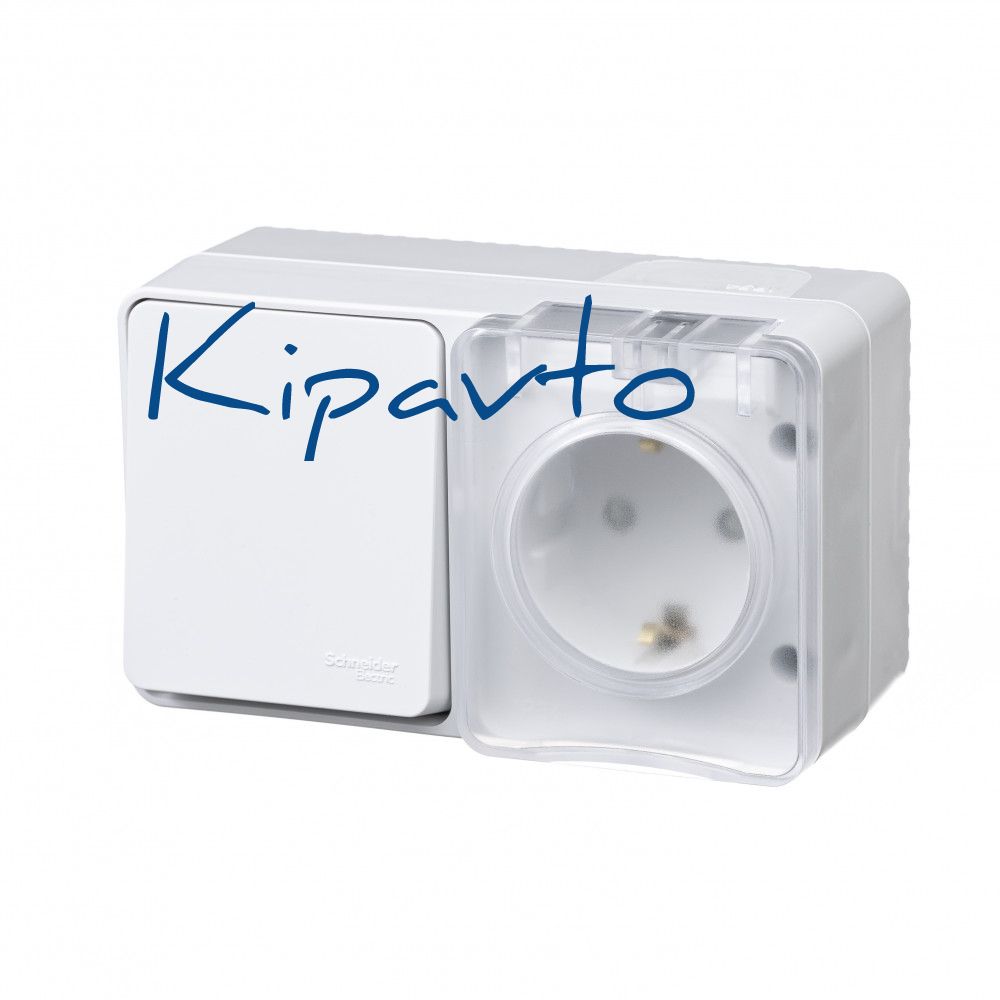 AtlasDesign Profi54 БЛОК: розетка с заземлением со шторками 16А 250B, выключатель одноклавишный IP54 10А, БЕЛЫЙ, Россия