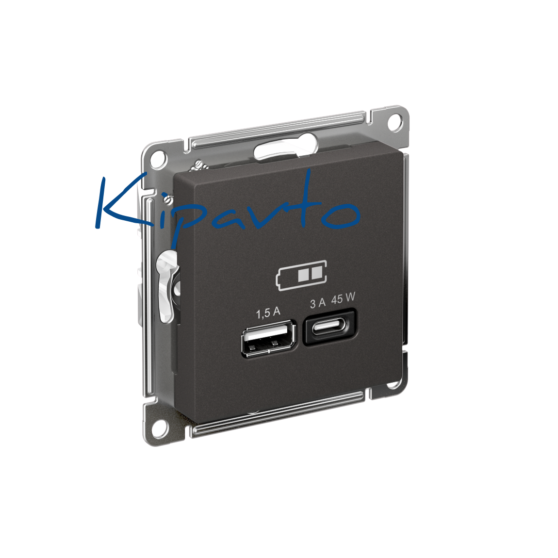 ATLASDESIGN USB РОЗЕТКА A + тип-C 45Вт высокоскор.заряд. QC, PD, механизм, БАЗАЛЬТ