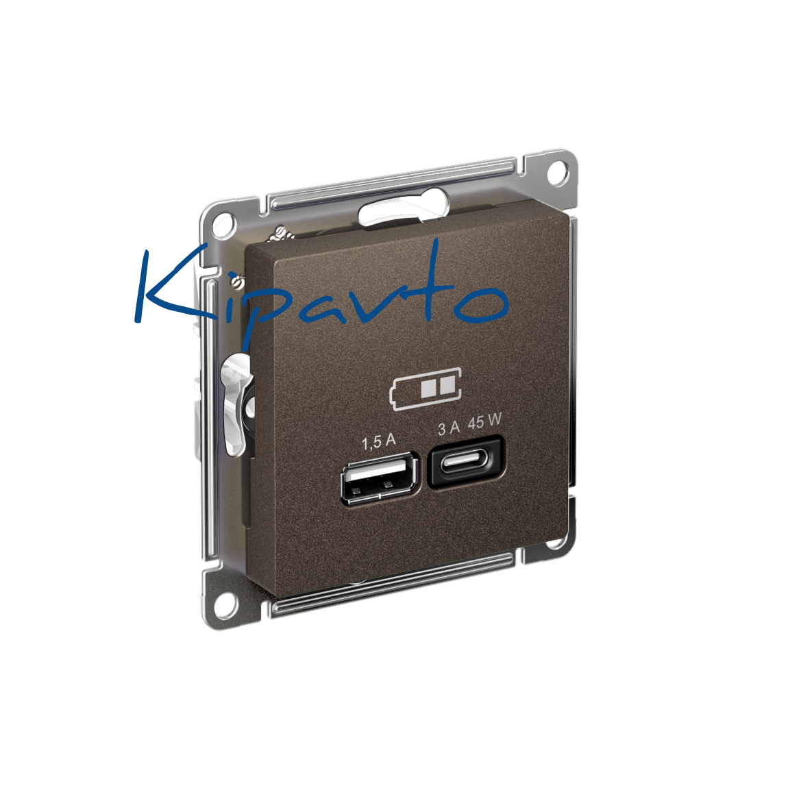 Розетка Systeme Electric серии AtlasDesign (цвет мокко) двойная USB с разъемами типа A плюс C высокоскоростная. Самая современная USB-зарядка с двумя разъемами позволяет заряжать как стандартные мобильные устройства через разъем типа А, так и новейшие устройства с разъемом типа С. Позволяет заряжать смартфоны последнего поколения, которые поддерживают функцию быстрой зарядки. Мощность, тип-A – 7.5 Вт, тип-С - 45Вт. Поддерживает современные протоколы быстрой зарядки QC, PD, последних версий. Лицевые детали из качественного ABS-пластика, устойчивого к царапинам и УФ-излучению.