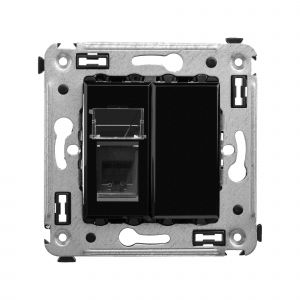 Телефонная розетка одинарная RJ-12 для монтажа в стену. Предназначена для монтажа в подрозеточные коробки глубиной не менее 45 мм (код 59301). Используется для подключения телефонного кабеля к рабочему месту. 6P6C. С пылезащитной шторкой, маркировочной табличкой. В комплекте разъем Keystone. Для заделки контактов используется инструмент типа 110. В изделии 2 модуля – 1 модуль механизма и 1 модуль заглушки (либо 1 модуль (1 шт.) либо 2 шт. по 0,5 модуля). Пластиковые части имеют цвет ''Черный квадрат''.