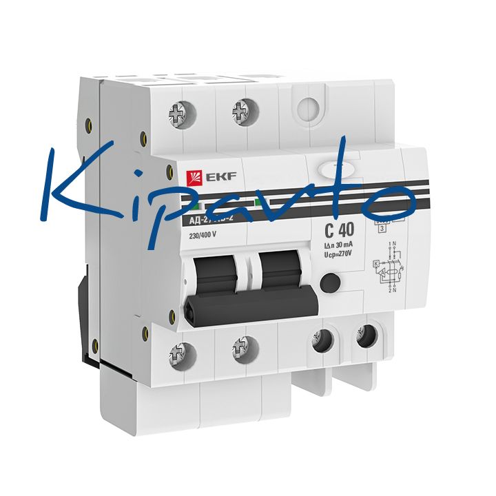 Комплектация: диф. автомат 2Р 40А 30мА тип АС х-ка C эл. 6кА АД-2 EKF