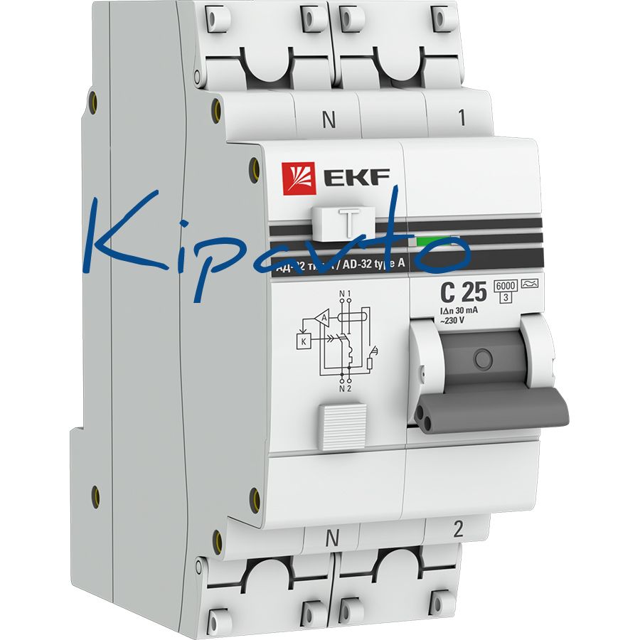 Комплектация: АД-32 1P+N 25А (С) 30мА тип (А) эл. 6кА EKF PROxima