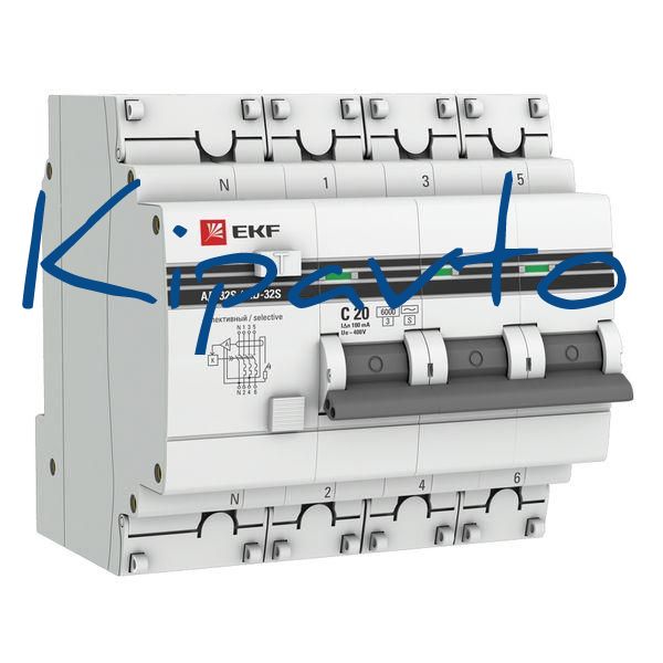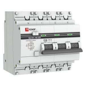 Комплектация: АД-32 3P+N (S) 20А (С) 100мА тип (АС) эл. 6кА EKF PROxima