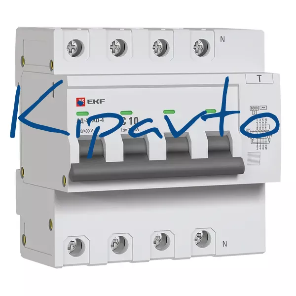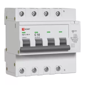 Комплектация: диф. автомат 4P 10А 30мА тип АС х-ка C эл. 6кА АД-4 EKF