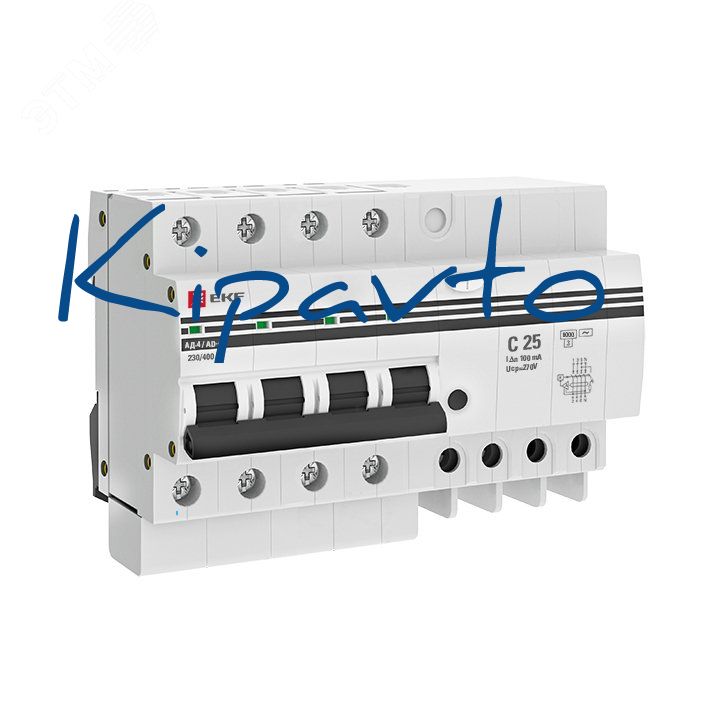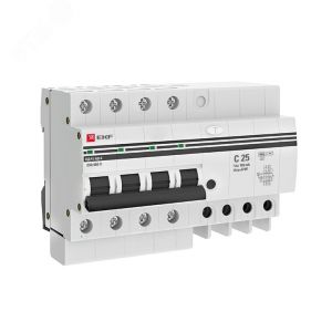 Комплектация: диф. автомат 4P 25А 100мА тип АС х-ка C эл. 6кА АД-4 EKF