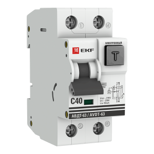 Комплектация: диф. автомат 40А 30мА х-ка C эл. тип A 6кА АВДТ-63 EKF PROxima