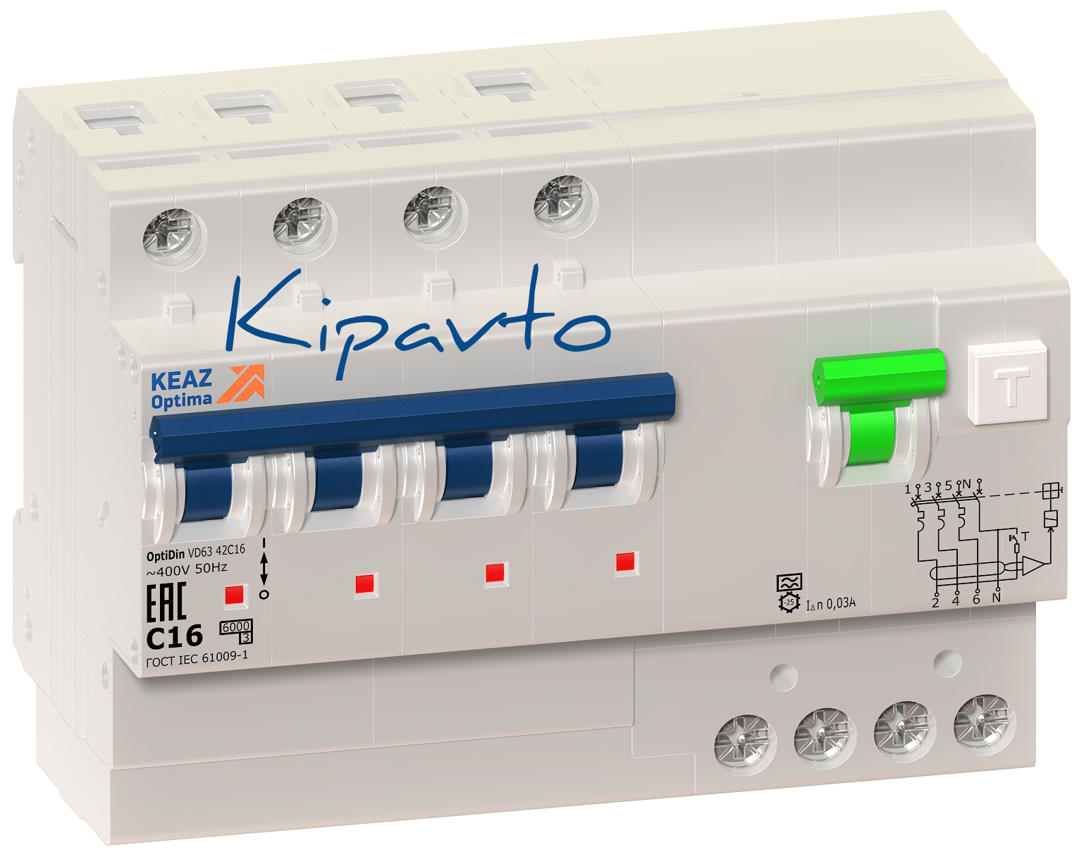 Автоматический выключатель дифференциального тока АВДТ с защитой от сверхтоков OptiDin VD63-42B20-A-УХЛ4 (4P, B20, 30mA)