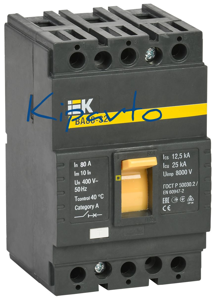Выключатель автоматический в литом корпусеНоминальный ток, А: 80