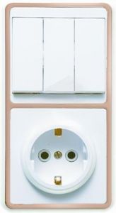 БЭЛЛА Блок БКВР-033 Выключатель трехклавишный + розетка с заземлением золото