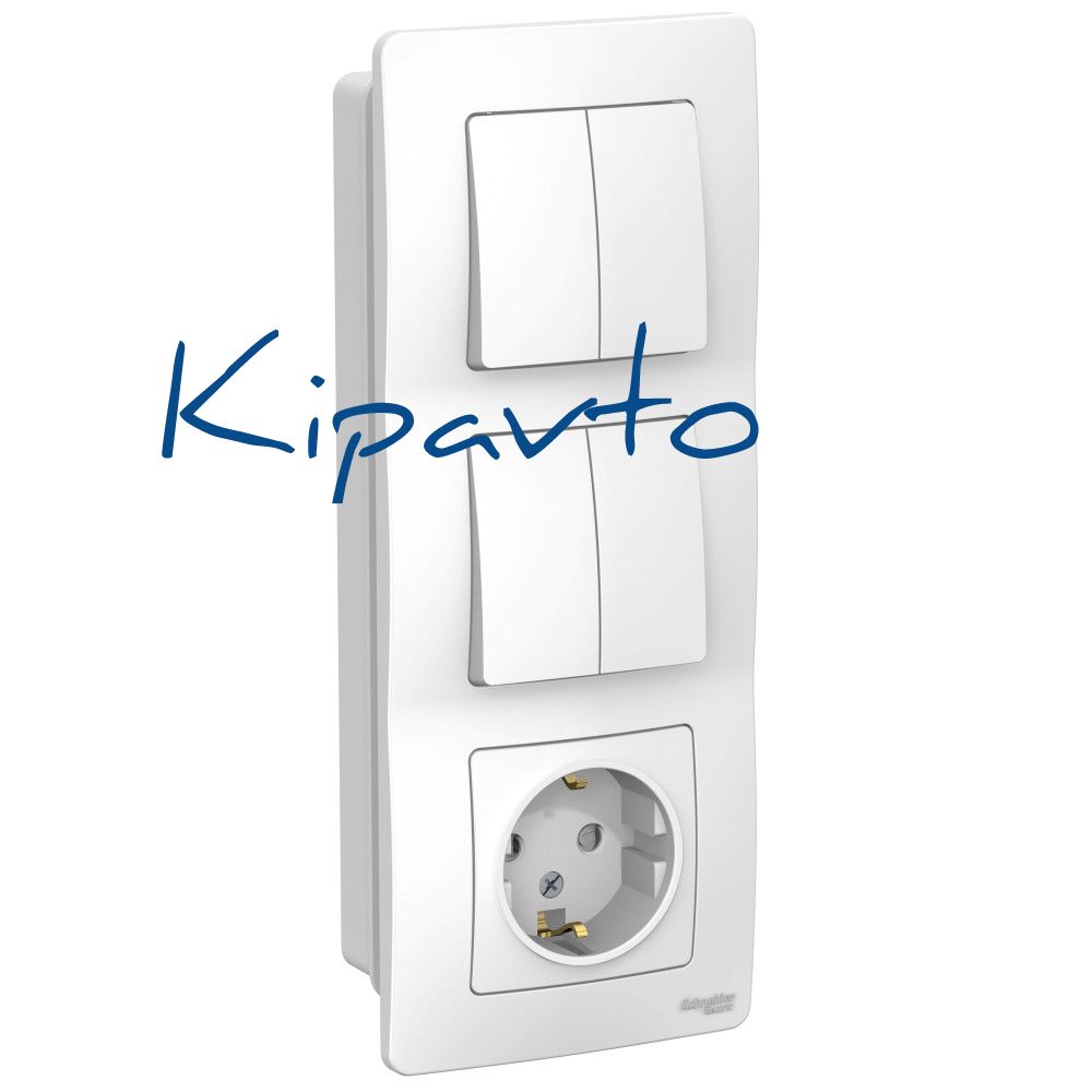 Блок Systeme Electric (ранее Schneider Electric) BLANCA (белый, скрытой установки) предназначен для сетей до 250В, состоит из розетки на 16А с заземлением и шторками и двух двухклавишных выключателей на 10А. Блок удобен в применении и отлично подходит для коридора. Шторки открываются при одновременном давлении в оба отверстия и препятствуют проникновению посторонних предметов.