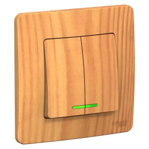 BLANCA скрытой установки двухклавишный выключатель (cх.5) с подсветкой, 10A, 250B, ясень
