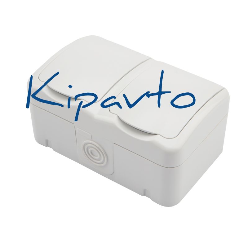 Блок горизонтальный 2 розетки Mini OG IP54 с заземлением, о/у, белый