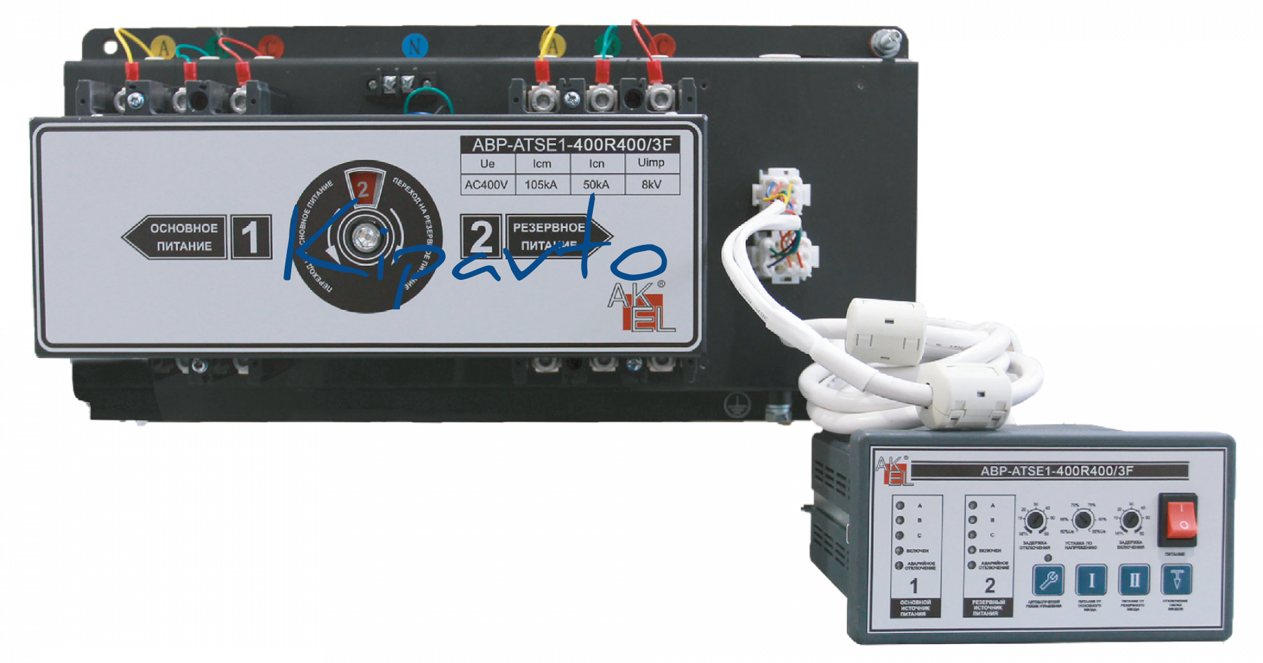 АВР-ATSE1 с выносным блоком управления применяется для переключения между двухсторонними источниками питания (общий источник питания, резервный источник питания) с рабочим напряжением 400 В перем. тока (50 Гц) и номинальным током до 100 А, с автоматическим выключателем в литом корпусе в качестве исполнительного механизма. Данное изделие подходит для больниц, торговых центров, банков, гостиниц, противопожарной защиты и других важных мест и областей, когда отключение питания не допускается.