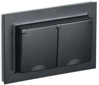 BRITE Розетка двойная с заземлением с защитными шторками и крышкой 16А в сборе IP44 РСбш12-3-44-БрЧ черный