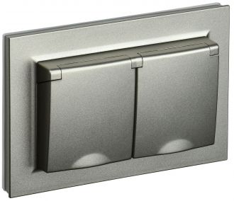 BRITE Розетка двойная с заземлением с защитными шторками и крышкой 16А в сборе IP44 РСбш12-3-44-БрШ шампань
