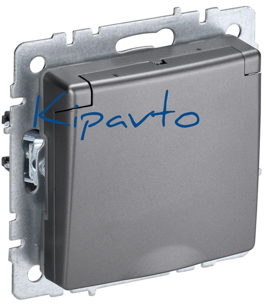 BRITE Розетка с заземлением с защитными шторками и крышкой 16А IP20 РСбш10-3-БрС сталь