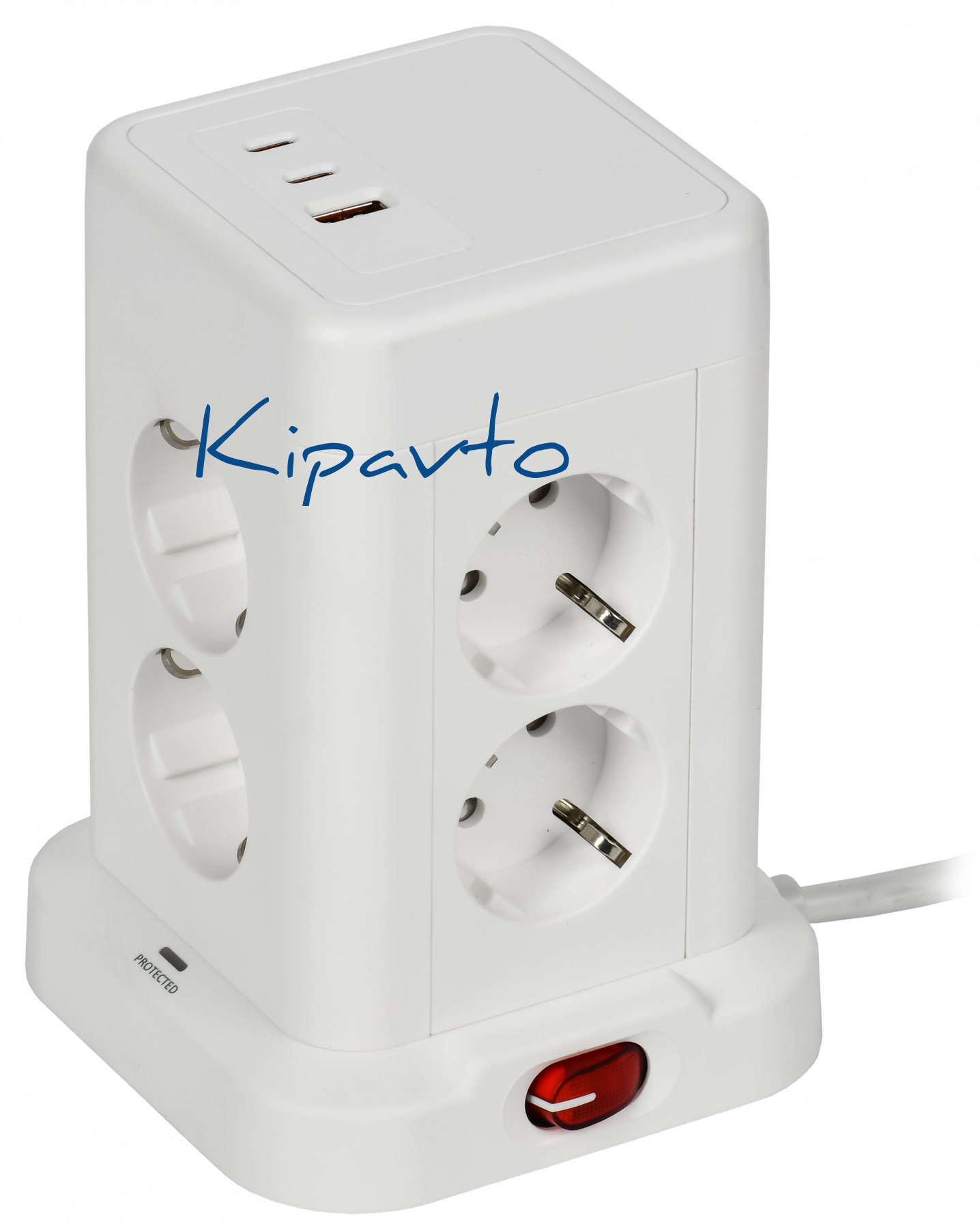 Преимущества: Быстрая зарядка PD20W через USB-A и USB-C — подходит для смартфонов, планшетов и ноутбуков|8 розеток с заземлением и защитными шторками — безопасно и удобно|Защита от перенапряжений и перегрузок по току обеспечивает безопасность подключенной техники|ПВС-кабель с медными жилами (100% медь) — надежное питание и долговечность
