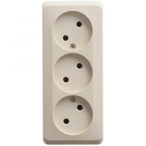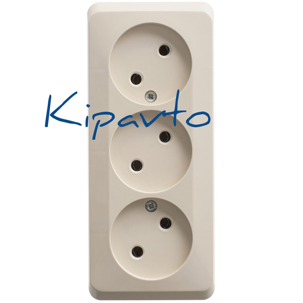 ЭТЮД Розетка тройная открытой установки без заземления без шторок 16А 250B, кремовый