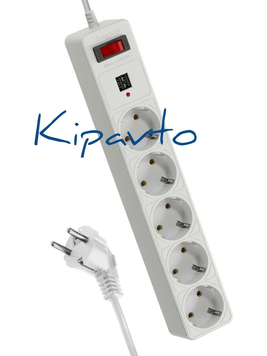 Сетевой фильтр белый на 5 гнезд с заземлением. Диаметр сечения провода - 3*0,75 кв.мм. Индикатор сети. Номинальный ток 10А, максимальная мощность - 2200Вт. Наличие 2-х USB разъемов 2.1A, 5V.