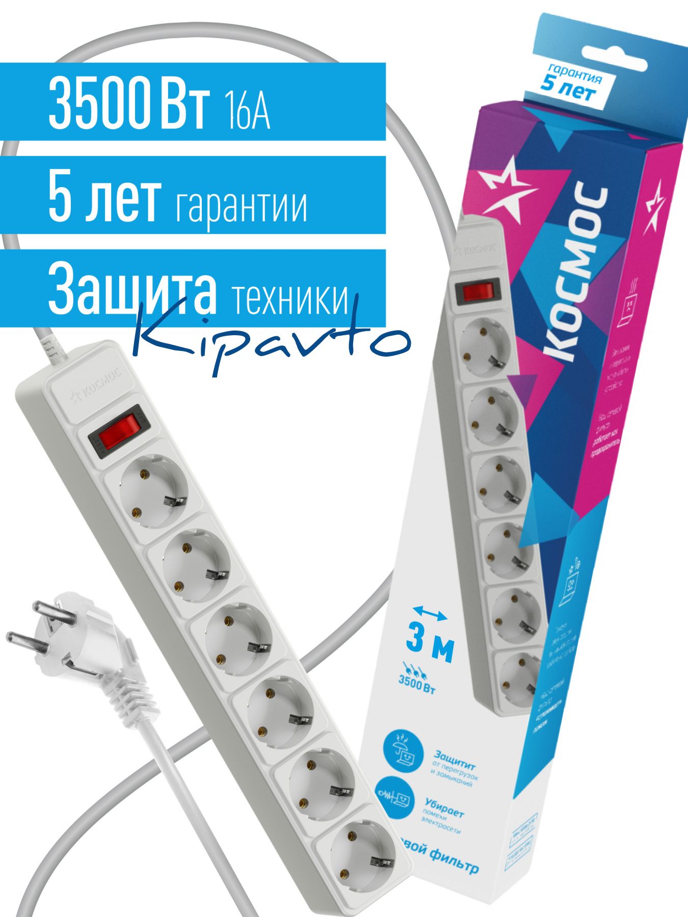 Сетевой фильтр белый на 5 гнезд с заземлением. Диаметр сечения провода - 3*1,00 кв.мм. Индикатор сети. Номинальный ток 16А, максимальная мощность - 3500Вт.