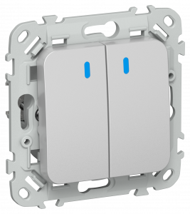 FLITE Выключатель 2-клавишный проходной с индикацией 10А ВС62-1-1-ФлА алюминий IEK