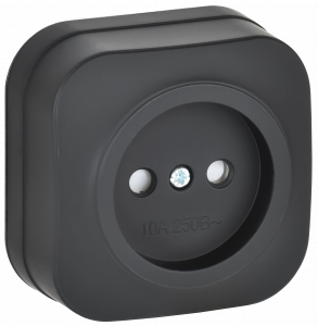 GLORY Розетка 1-местная для открытой установки без заземления с защитными шторками 10А РСш20-2-ХЧм черный матовый IEK