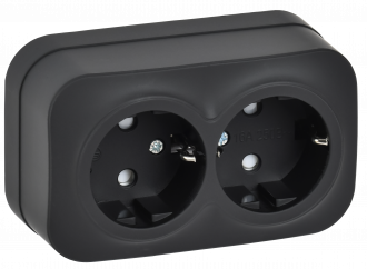 GLORY Розетка 2-местная для открытой установки с заземлением с защитными шторками 16А РСш22-3-ХЧм черный матовый IEK