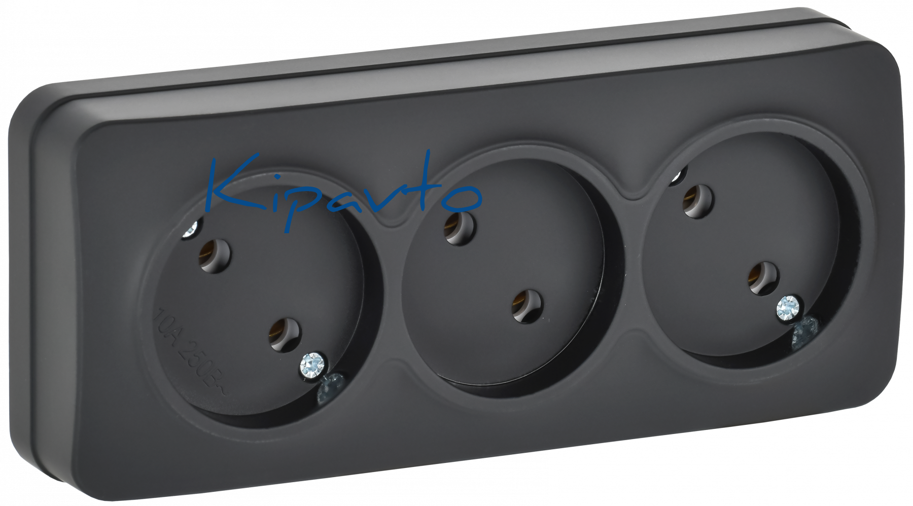 GLORY Розетка 3-местная для открытой установки без заземления без защитных шторок 10А РС23-2-ХЧм черный матовый IEK