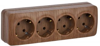 GLORY Розетка четырехместная наружная с заземлением дуб