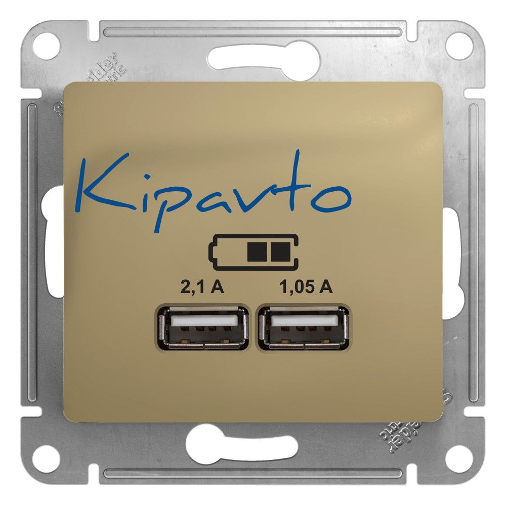 Механизм Systeme Electric (ранее Schneider Electric) серии Glossa (цвет титан) розетки с двумя разъёмами USB с выходными напряжением 5 В постоянного тока и выходами с номинальным током по 2,1 А. Предназначен для зарядки мобильных устройств: телефоны, планшетные компьютеры, mp3/mp4 плееры. Может заряжать одно или два устройства одновременно. Выполнен из материала PС+ASA, стойкого к УФ-излучению и появлению царапин.
