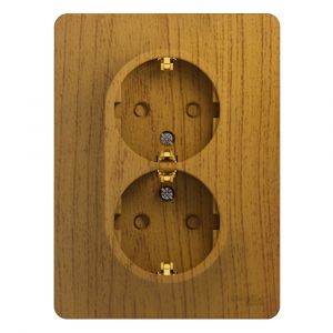GLOSSA Розетка двойная с заземлением со шторками дуб в сборе