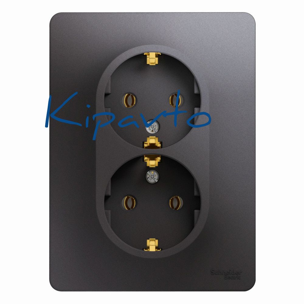 Розетка двойная Systeme Electric (ранее Schneider Electric) серии Glossa (в сборе, цвет графит) с заземлением, без шторок подходит для сетей 250 В, на ток 16 А. Заземляющий контакт обеспечивает дополнительную защиту от удара электрическим током. При наличии заземления электрический потенциал уходит в землю, защищая человека. Выполнен из материала PС+ASA, стойкого к УФ-излучению и появлению царапин. Двойная розетка позволяет подключить два устройства в одном месте.