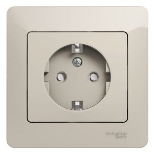 Розетка Systeme Electric (ранее Schneider Electric) серии Glossa (в сборе, цвет молочный) одинарная с заземлением и шторками подходит для сетей 250 В, на ток 16 А. Заземляющий контакт обеспечивает дополнительную защиту от удара электрическим током. При наличии заземления электрический потенциал уходит в землю, защищая человека. Выполнен из материала PС+ASA, стойкого к УФ-излучению и появлению царапин. Эргономичные клеммы розеток расположены в один ряд.