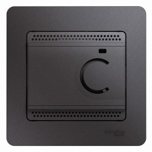 Термостат Schneider Electric Glossa (в сборе, цвет графит) электронный для тёплого пола с датчиком на ток до 10 А. Диапазон температур: от +5 до +50 °C. Термостат контролирует температуру теплого пола путем регулировки температуры нагревательных кабелей, вмонтированных в пол. Термостат включается с помощью выключателя, расположенного на передней панели. Выполнен из материала PС+ASA, стойкого к УФ-излучению и появлению царапин.