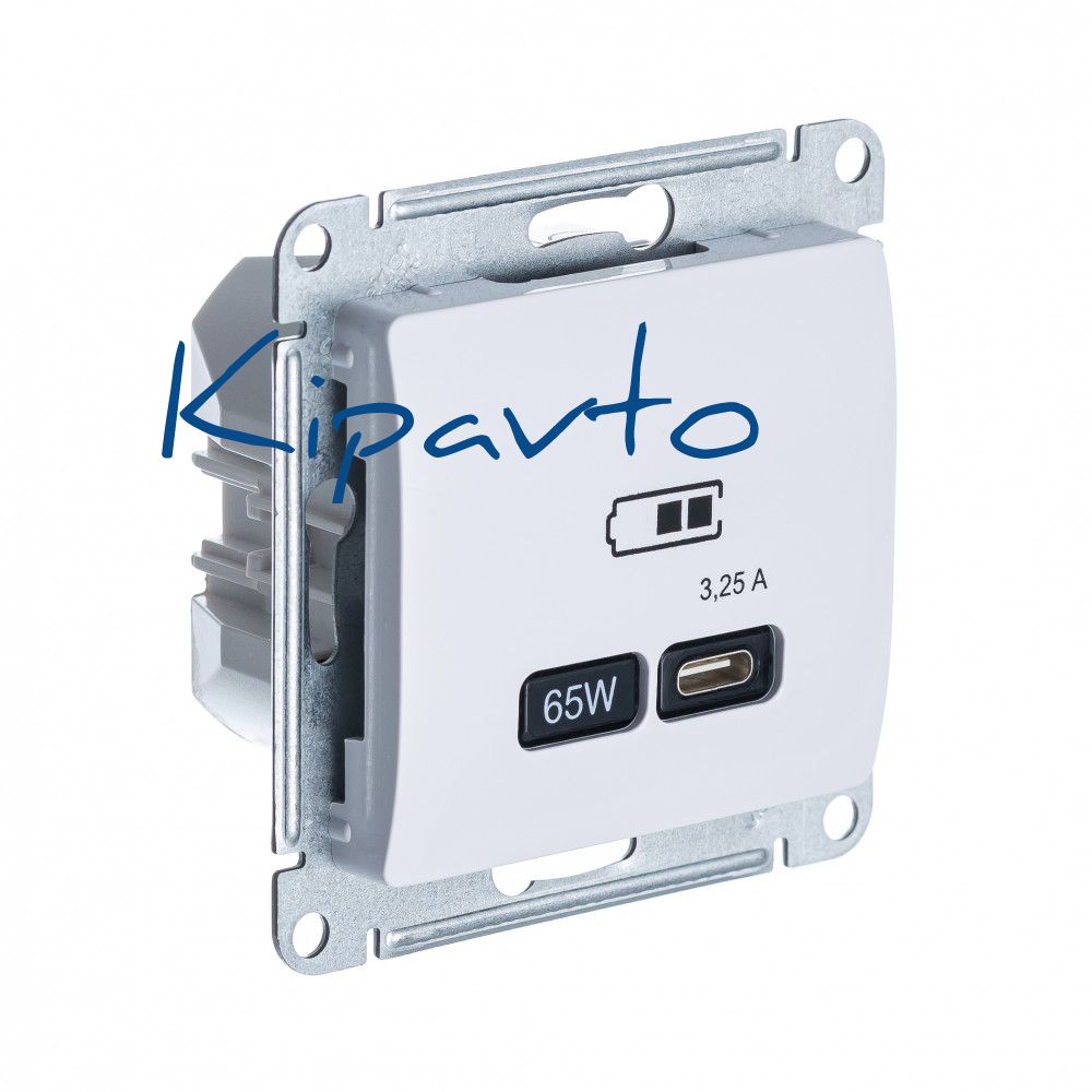 GLOSSA USB РОЗЕТКА тип-С 65W высокоскор.заряд. QC, PD, механизм, БЕЛЫЙ