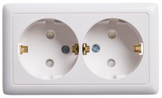 Розетка Systeme Electric (ранее Schneider Electric) ХИТ (открытой установки, цвет белый) двойная с заземлением, шторками предназначена для сетей до 250 В на ток до 16 А. Двойная розетка позволяет подключить два устройства в одном месте. Шторки обеспечивают дополнительную безопасность в доме, где находятся дети. Заземляющий контакт обеспечивает дополнительную защиту от удара электрическим током. При наличии заземления электрический потенциал уходит в землю, защищая человека. Сделано в России.