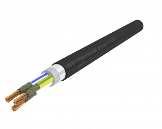 Кабель силовой с медными жилами, с термическим барьером из слюдосодержащих лент, с изоляцией и оболочкой из поливинилхлоридного пластиката пониженной пожарной опасности, с общим экраном из алюмофлекса под оболочкой. Кабели предназначены для кабельных линий питания оборудования систем безопасности, электропроводок цепей систем пожарной безопасности (цепи пожарной сигнализации, питания насосов пожаротушения, освещение запасных выходов и путей эвакуации), для электропроводок в операционных отделениях больниц, цепей аварийного электроснабжения и питания оборудования (токоприемников), функционирующих при пожаре.