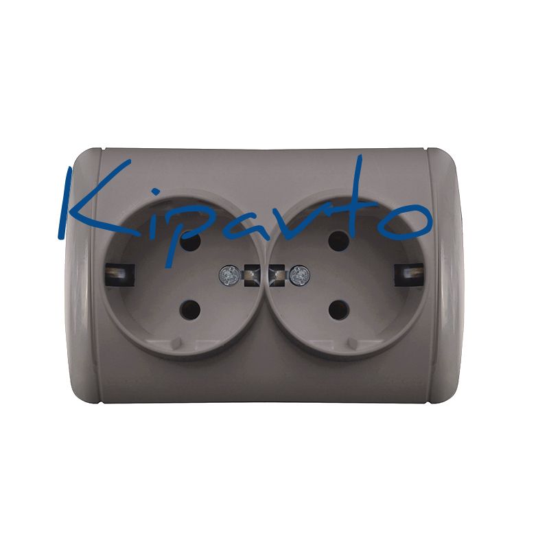 Клио розетка двухместная Клио, IP44, с/з, о/у, 16А, 220В, серый (еврослот)
