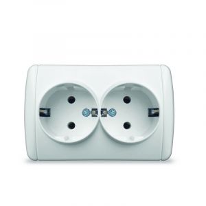 Клио Розетка электрическая двухпостовая с/з IP44 белый