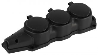 Колодка каучуковая с заземлением 3 розетки 16A IP44 черная KX-3e-B-IP44
