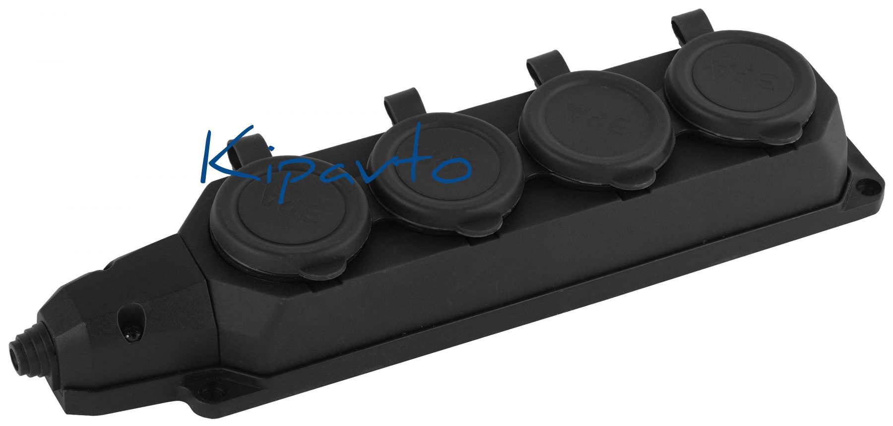 Колодка каучуковая с/з 4 гнезда 16A IP44 черная K-4e-B-IP44
