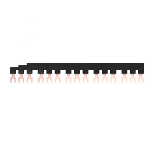 Комплект трехполюсных шин для автоматических выключателей серии SystemePact GM2, на номинальный ток до 63А, исполнение – 5 модулей по 45 мм, монтаж – сверху выключателей. Шины предназначены для правильного и надежного подключения к источнику питания нескольких автоматических выключателей, установленных на одну DIN-рейку.