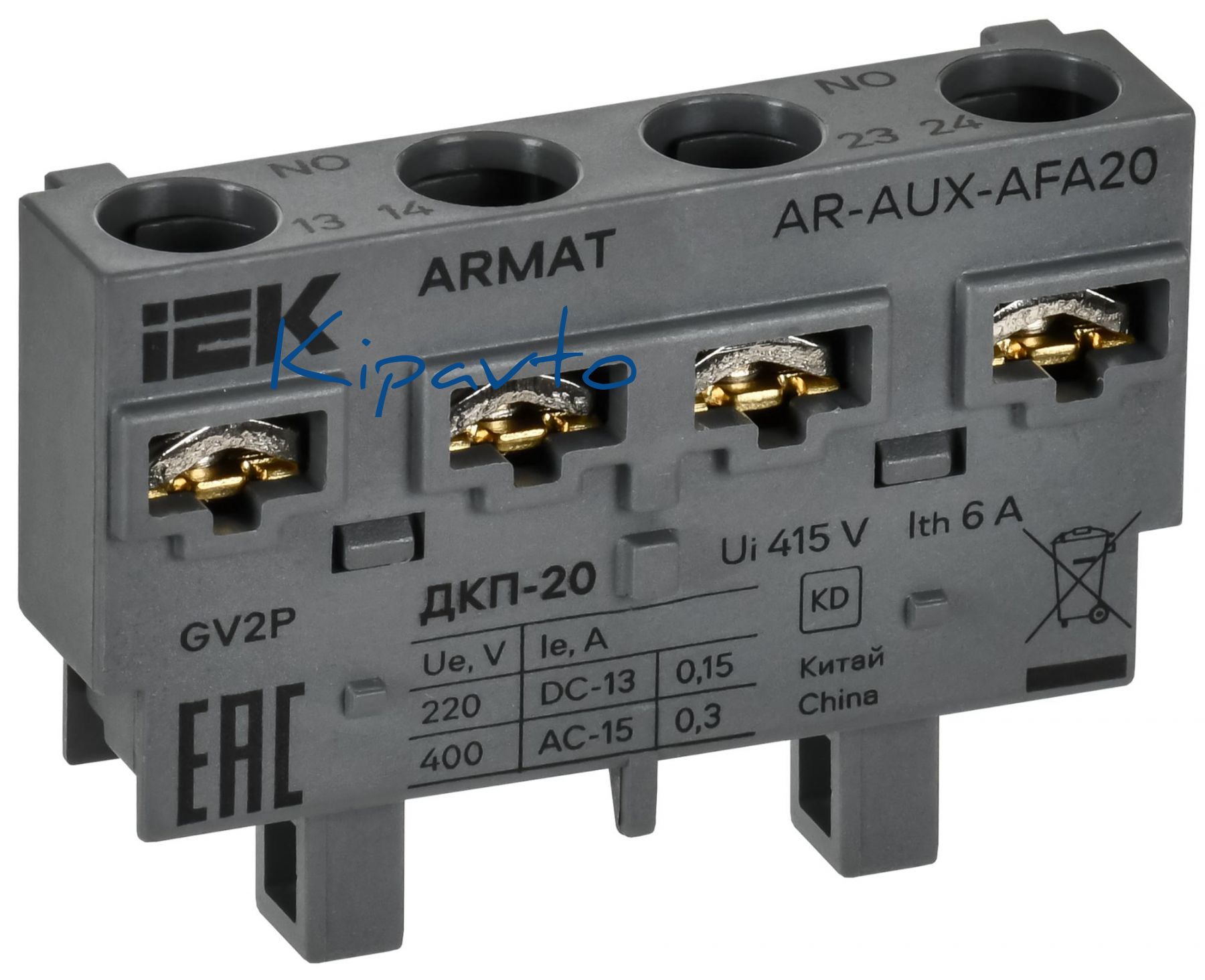 Дополнительный контакт для автоматического выключателя защиты двигателя серии ARMAT предназначен для коммутации цепей управления и сигнализации переменного тока при изменении коммутационного состояния главных контактов. Дополнительный контакт соответствует требованиям ТР ТС 004/2011.