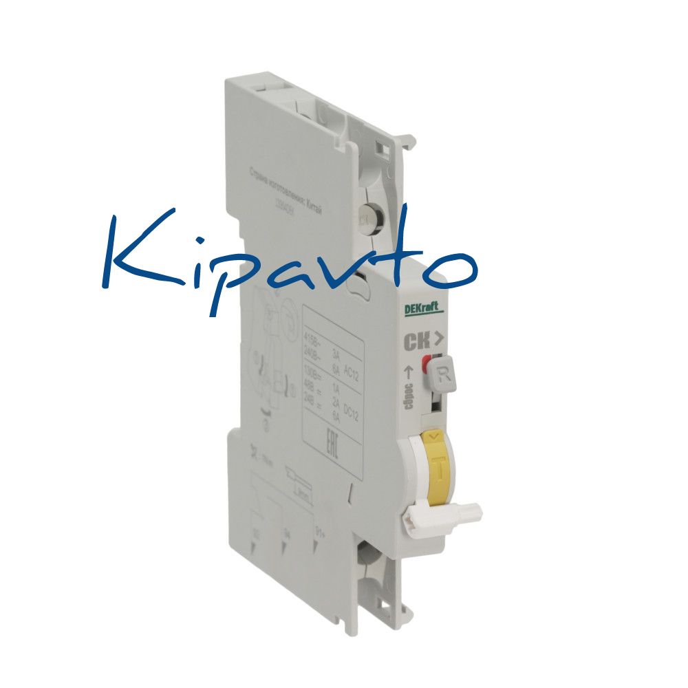 Контакт сигнальный СК-105 для автоматических выключателей серии ВА-105 и ВА-105 DC DEKraft - предназначен для сигнализации аварийного срабатывания выключателя, тип контакта переключающий, ширина 9 мм, присоединение к выключателю слева.