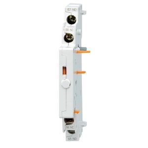 Контакт предназначен для дистанционной сигнализации аварийного отключения автомата защиты двигателя. Конфигурация контакта 2NC. Применяется для выключателей серии MMS-63, 100.