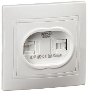 KVARTA Розетка 2-местная компьютерная RJ45 кат.5е РК12-КБ белый GENERICA