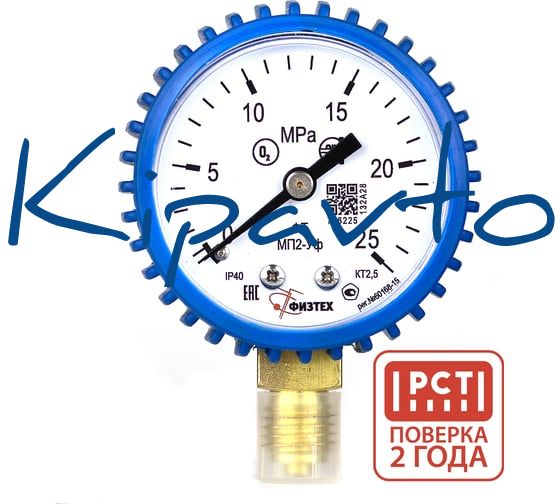 Манометр кислородный Физтех МП2-Уф 0-25 МПа кт.2,5 d.50 IP40 M12_1,5 РШ Кис (O2), кожух синий 4687207023061
