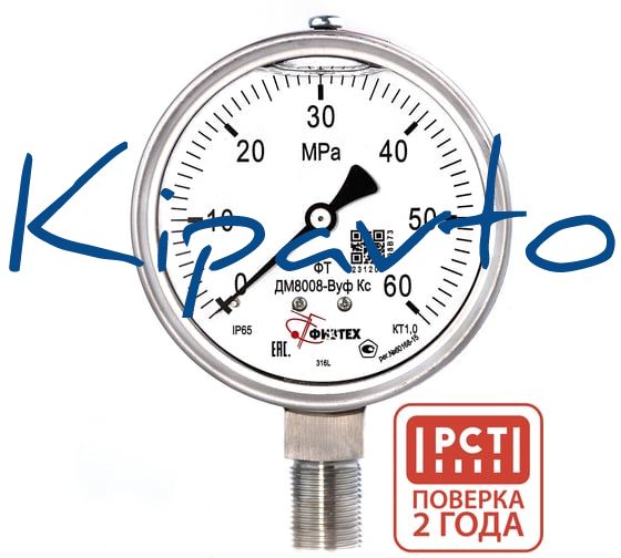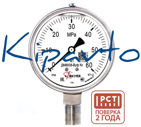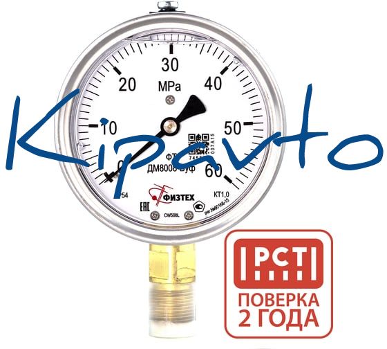 Манометр коррозионностойкий Физтех ДМ8008-ВУф Кс 0-60 МПа кт.1,0 d.100 IP65 M20_1,5 РШ SG, Глицерин 4687205720856