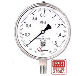 Манометр коррозионностойкий Физтех ДМ8008-ВУф Кс исп 2 0-1,6 МПа кт.1,0 d.160 IP65 M20_1,5 РШ SG, Глицерин 4687205724526