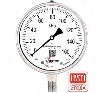 Манометр коррозионностойкий Физтех ДМ8008-ВУф Кс исп 2 0-160 кПа кт.1,0 d.160 IP65 M20_1,5 РШ SG, Глицерин 4687205724649